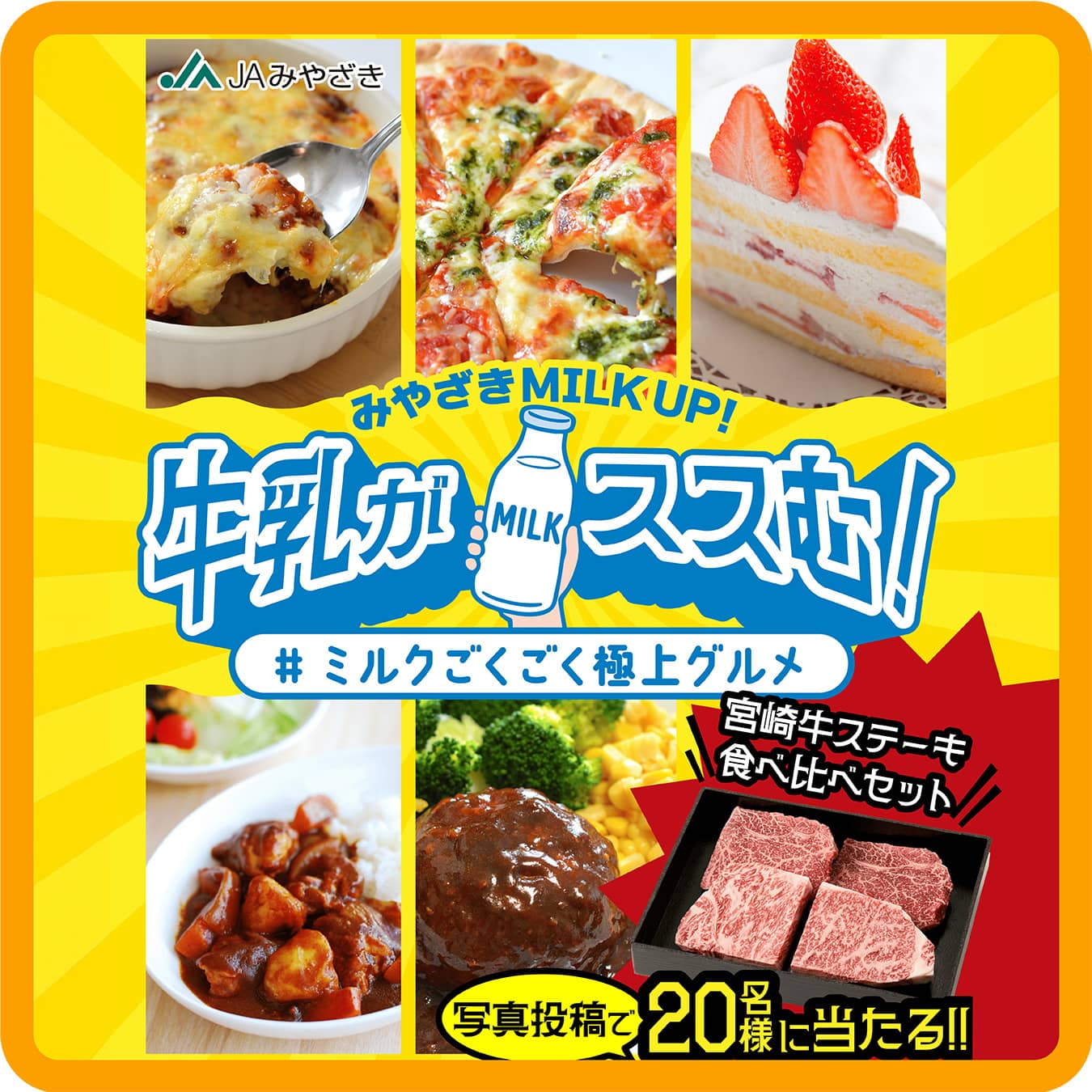 新型コロナウイルスの影響で「牛乳」の需要が落ち込む中「牛乳の力で宮崎を元気に」を合言葉に、『みやざきMILK UP!プロジェクト』を立ち上げました。より多くの消費者の皆様に対して、酪農に触れ合ってもらう機会を創ることで牛乳・乳製品の応援消費の機運醸成と酪農との繋がりをこの機会に感じてもらうことを目的としております。